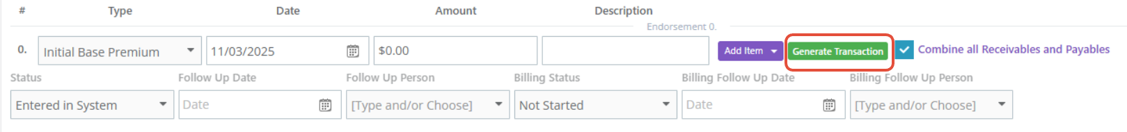 1. Click Save And Create Invoice for Receivables and Issue Payment for Payables and Net Agency Commissions – this will create the invoice for the insured under Documents → Invoices/Receipts.