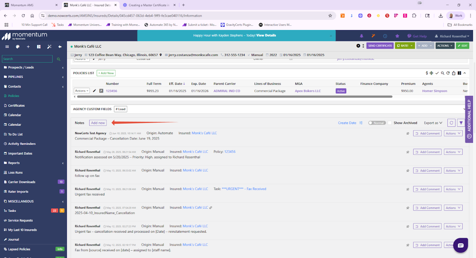 Link to the Correct Policy — Make sure the note or request is tied to the policy with the correct coverage period.
