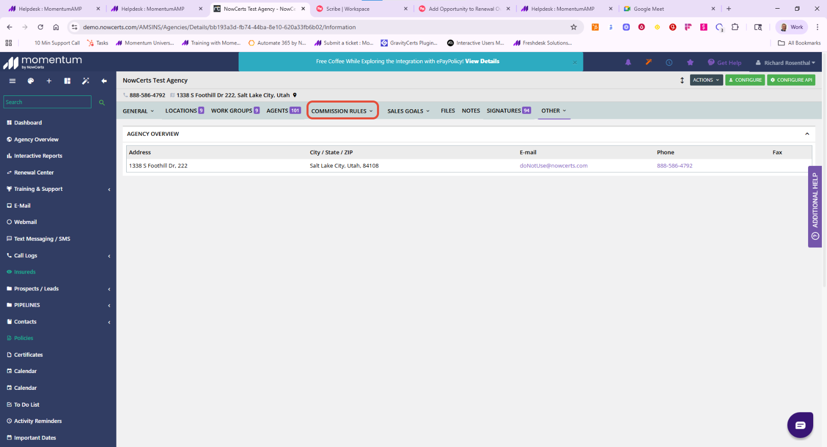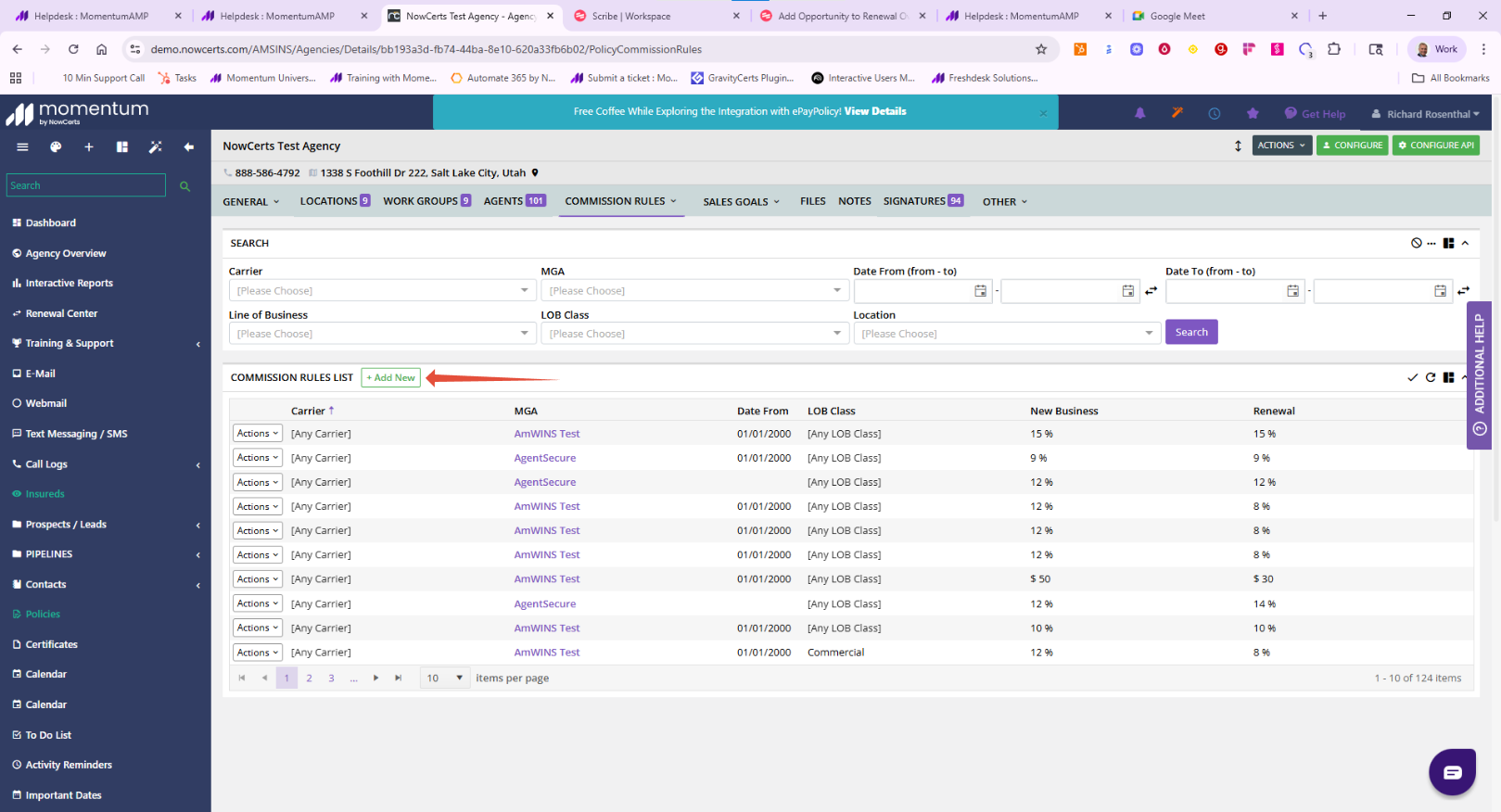 .In the top navigation bar of the Agency Profile screen, click Commission Rules.