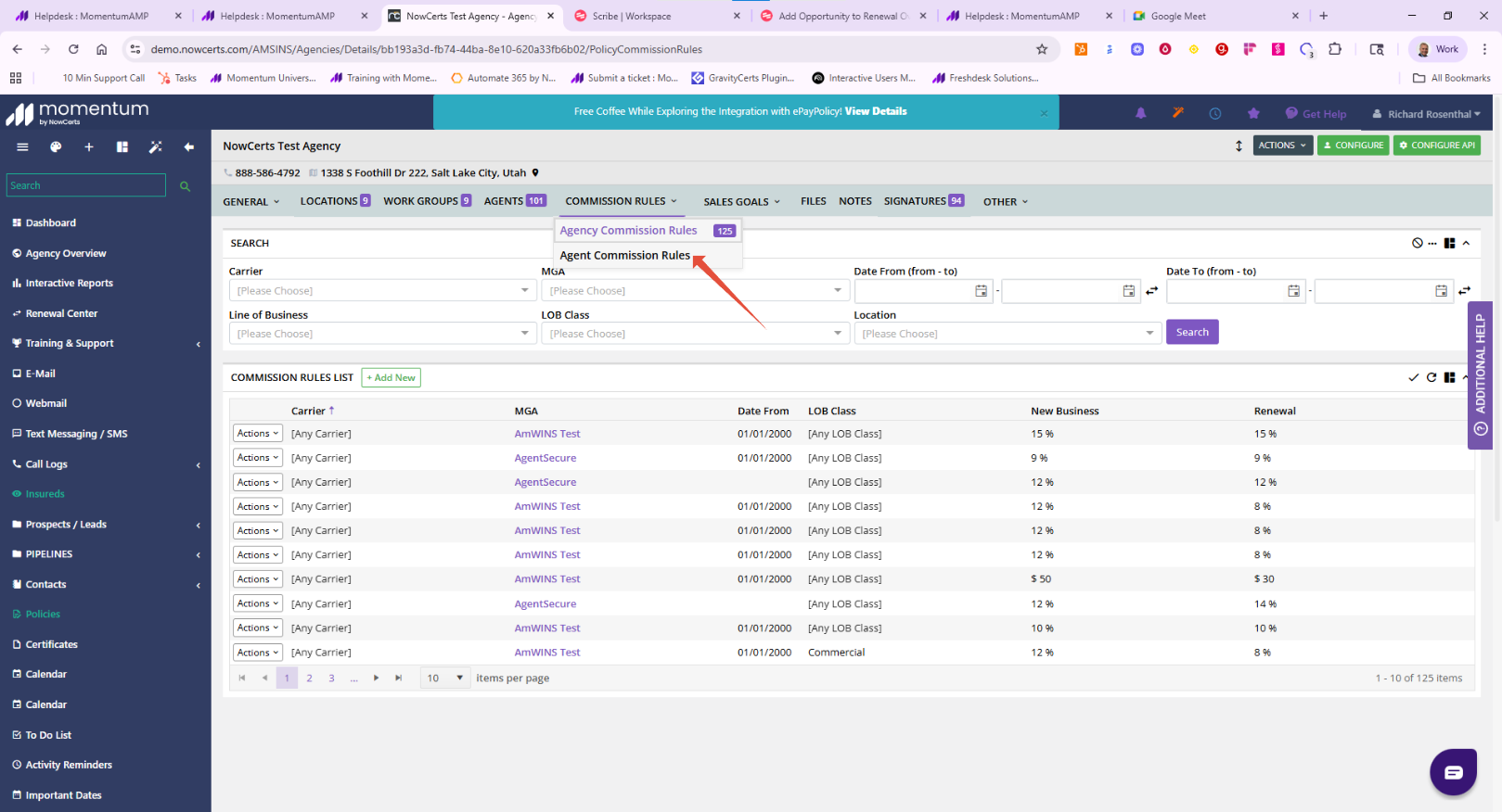 Agent Commission Rules in Momentum AMS control how the system calculates commissions payable to agents when transactions are generated.