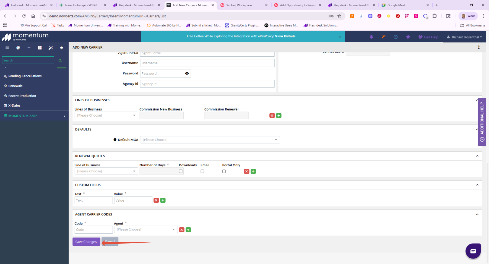 Carriers in Momentum AMS represent the insurance companies your agency works with. Setting them up correctly ensures accurate policy entry, billing, commission tracking, and carrier downloads.
