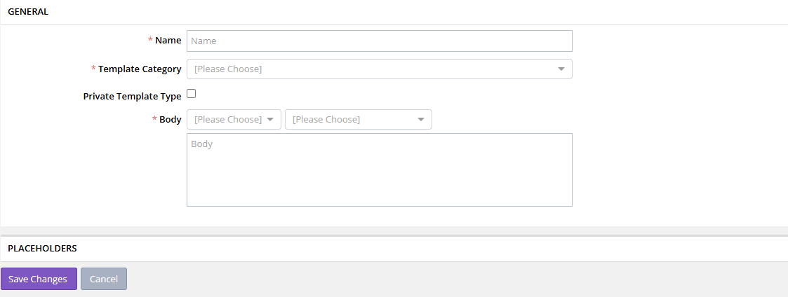 | Body | Type or paste the text for the template. You can include placeholders for fields that will auto-fill when used. |