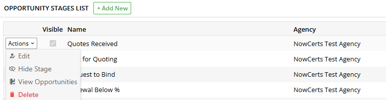 Opportunity stages represent the sequential steps your agency uses to manage opportunities.