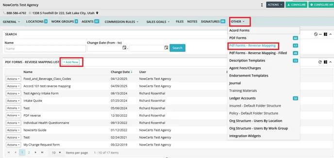 • Go to Agency Profile → Other → Reverse Mapping PDF Forms.