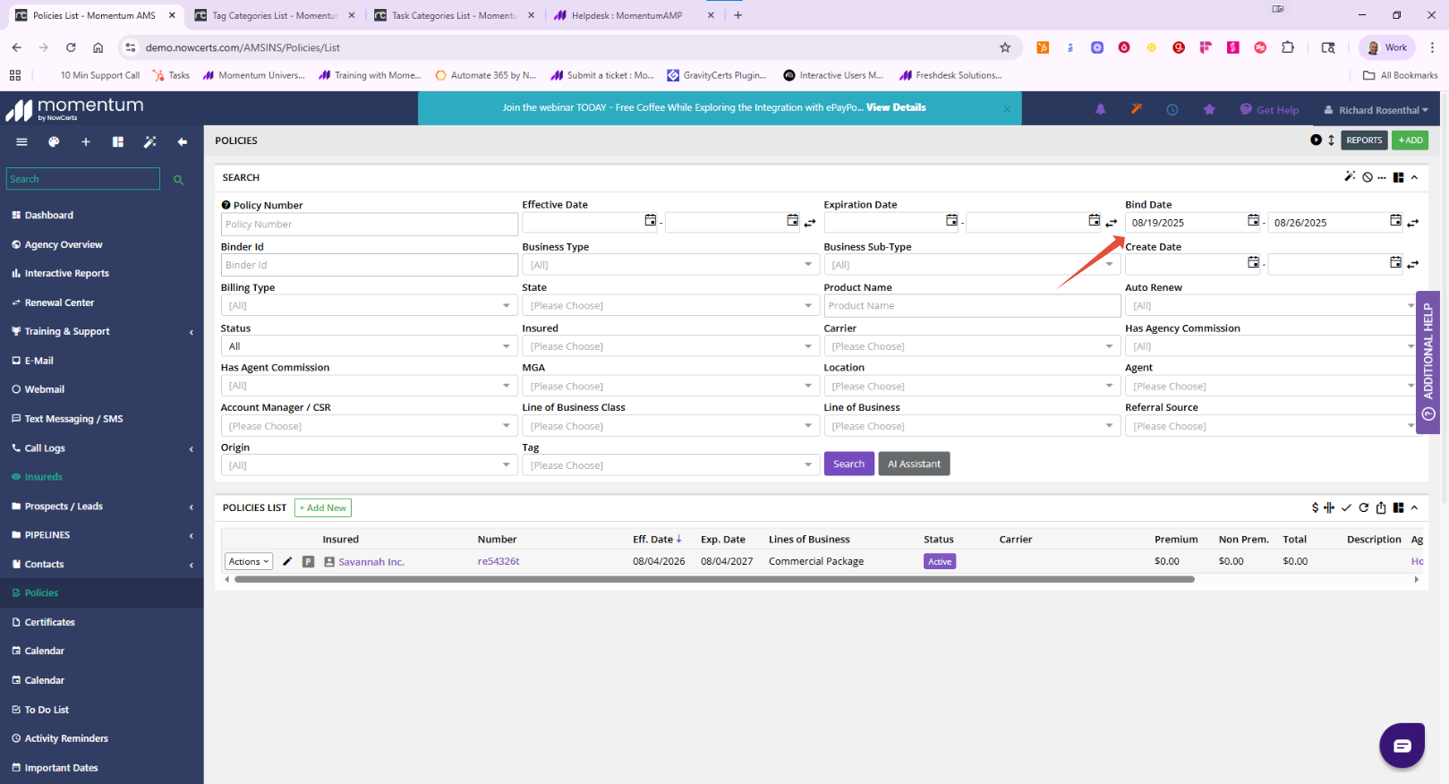 The new business onboarding workflow in Momentum AMS is designed to create a strong first impression while ensuring all client and policy information is accurately set up and communicated. This process builds trust, establishes clarity, and sets the tone for long-term customer relationships.