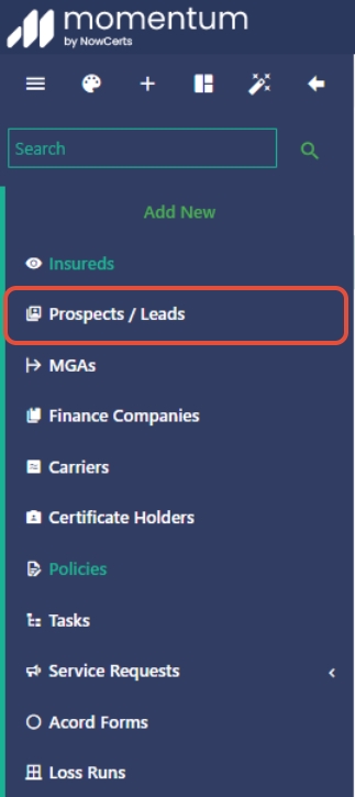 Before quoting, you must have a Prospect Record in Momentum AMS.
