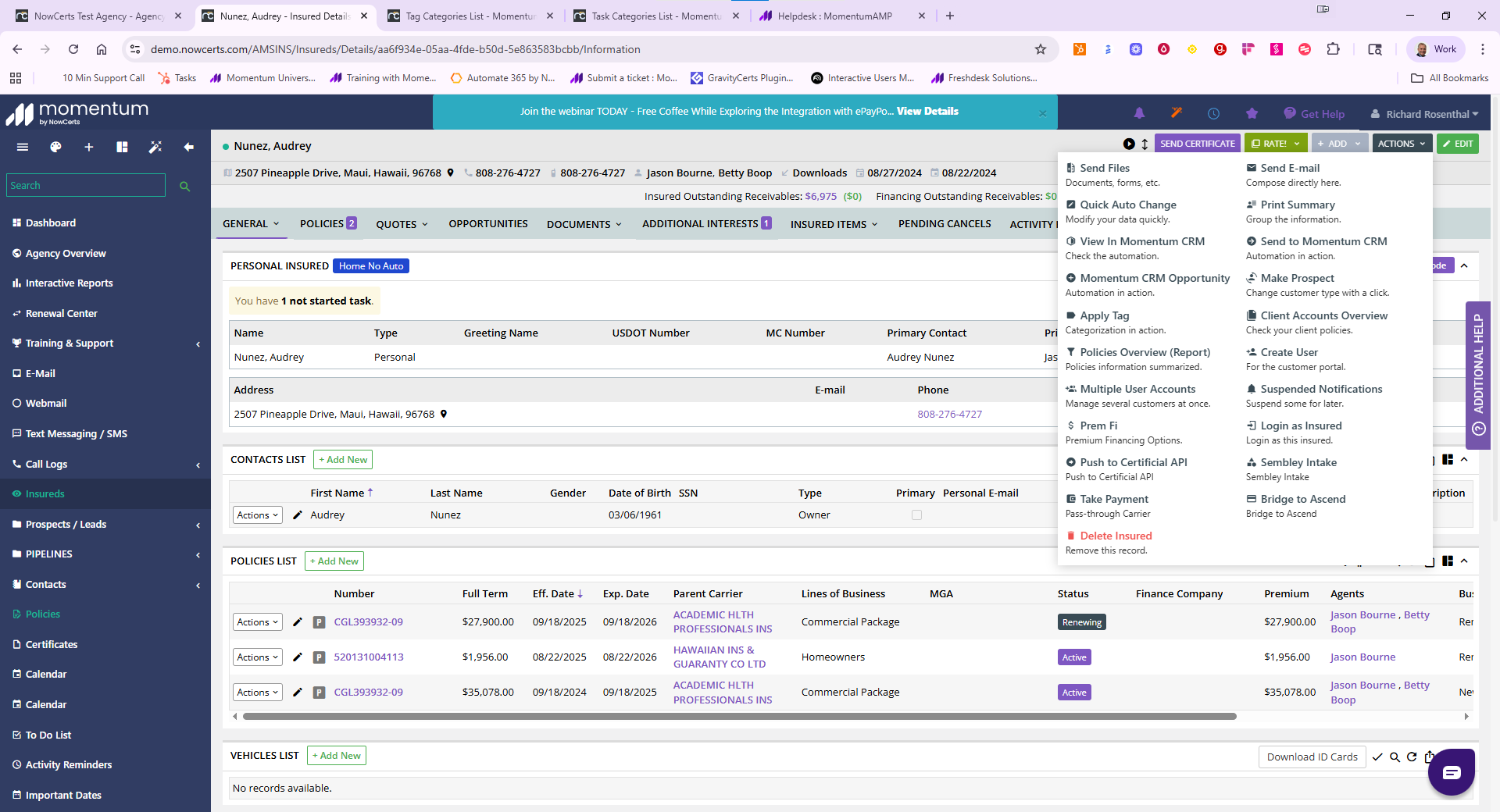 ✅ Outcome: By following this workflow, your agency ensures all required documents are collected, verified, and stored in Momentum AMS, with a complete audit trail for carrier and regulatory reviews.