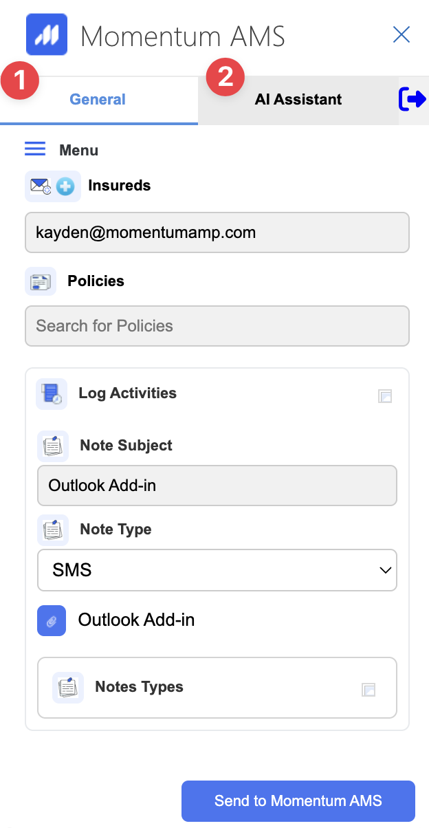 Detected emails trigger notifications in both the add-in and your Momentum AMS dashboard.
