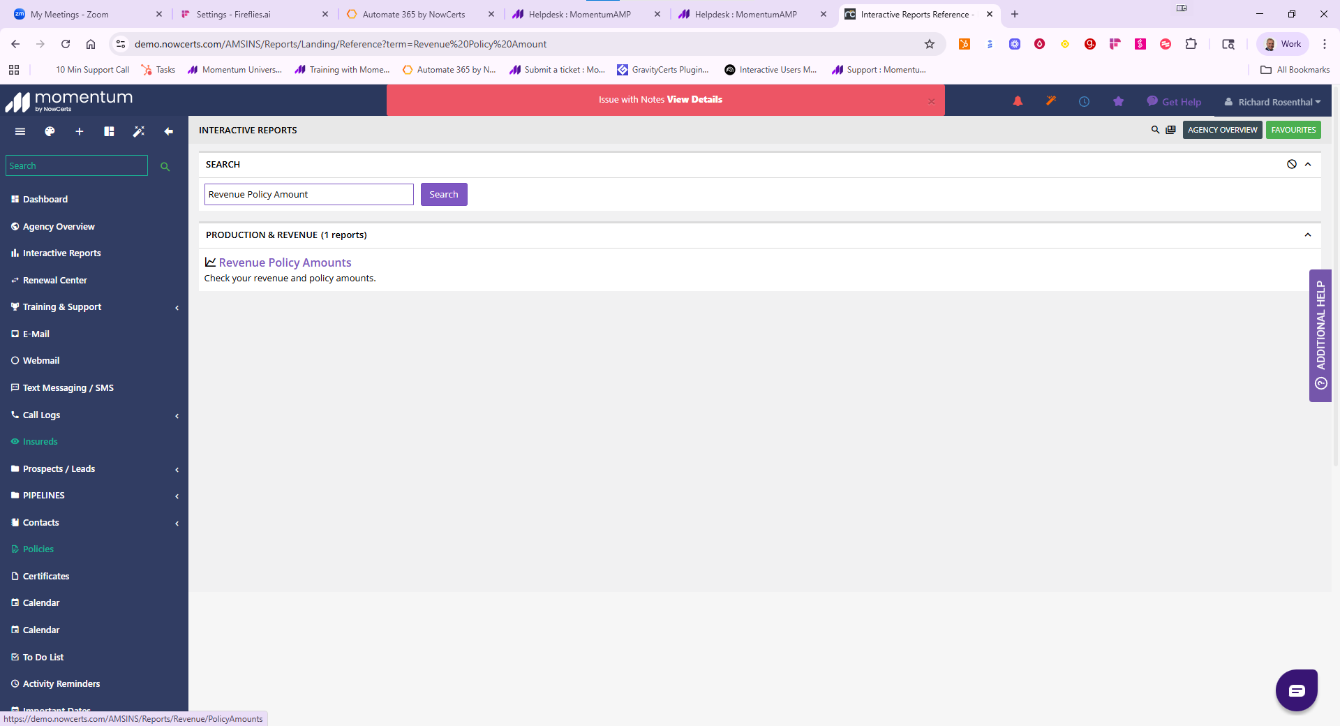 Search for Revenue Policy Amount (or simply type “Revenue” in the search bar).