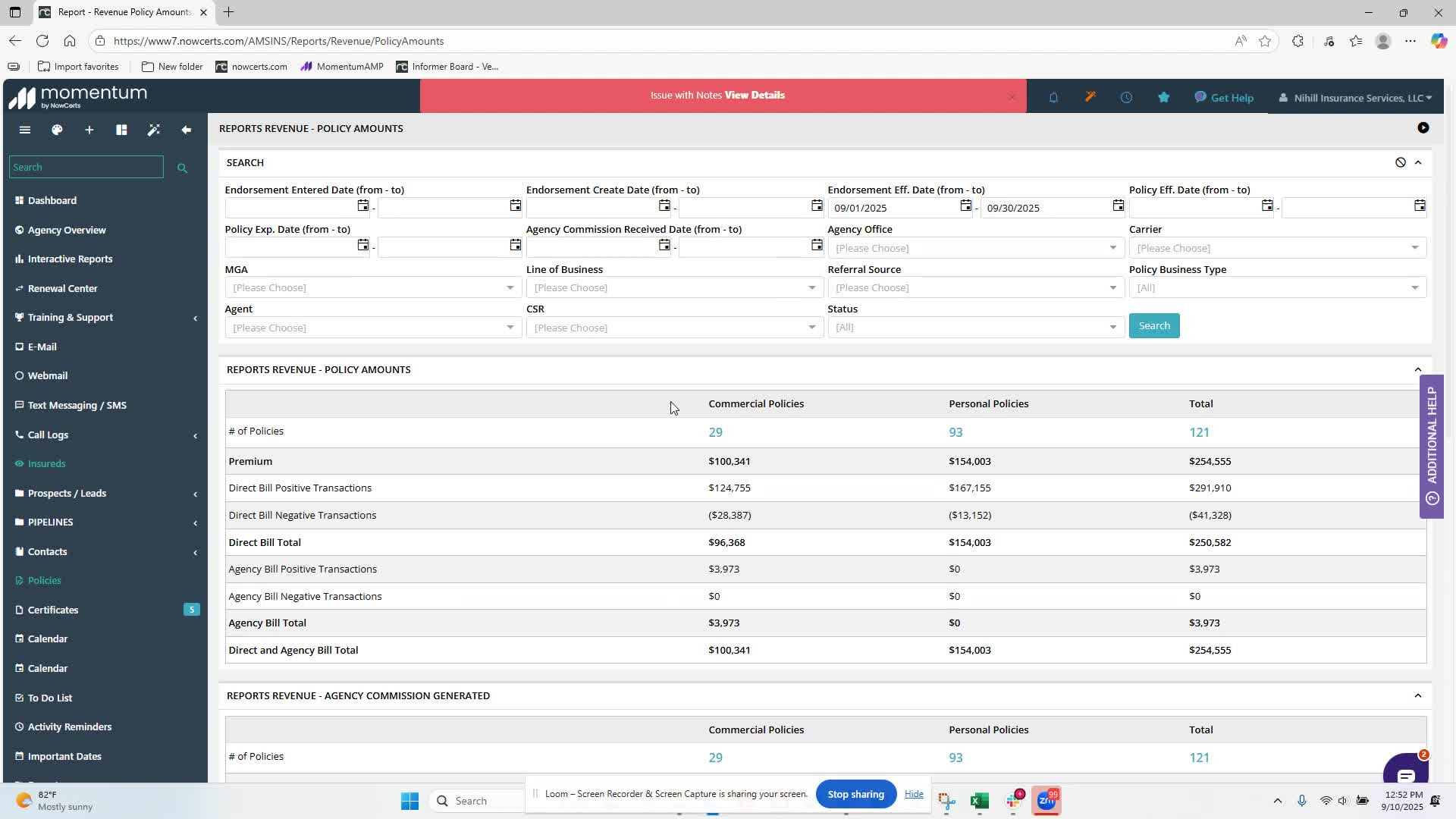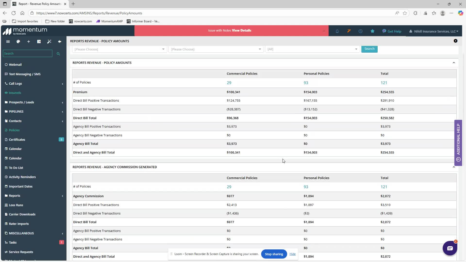 Shows production-based revenue — the premium and commission you generated during the selected period.
